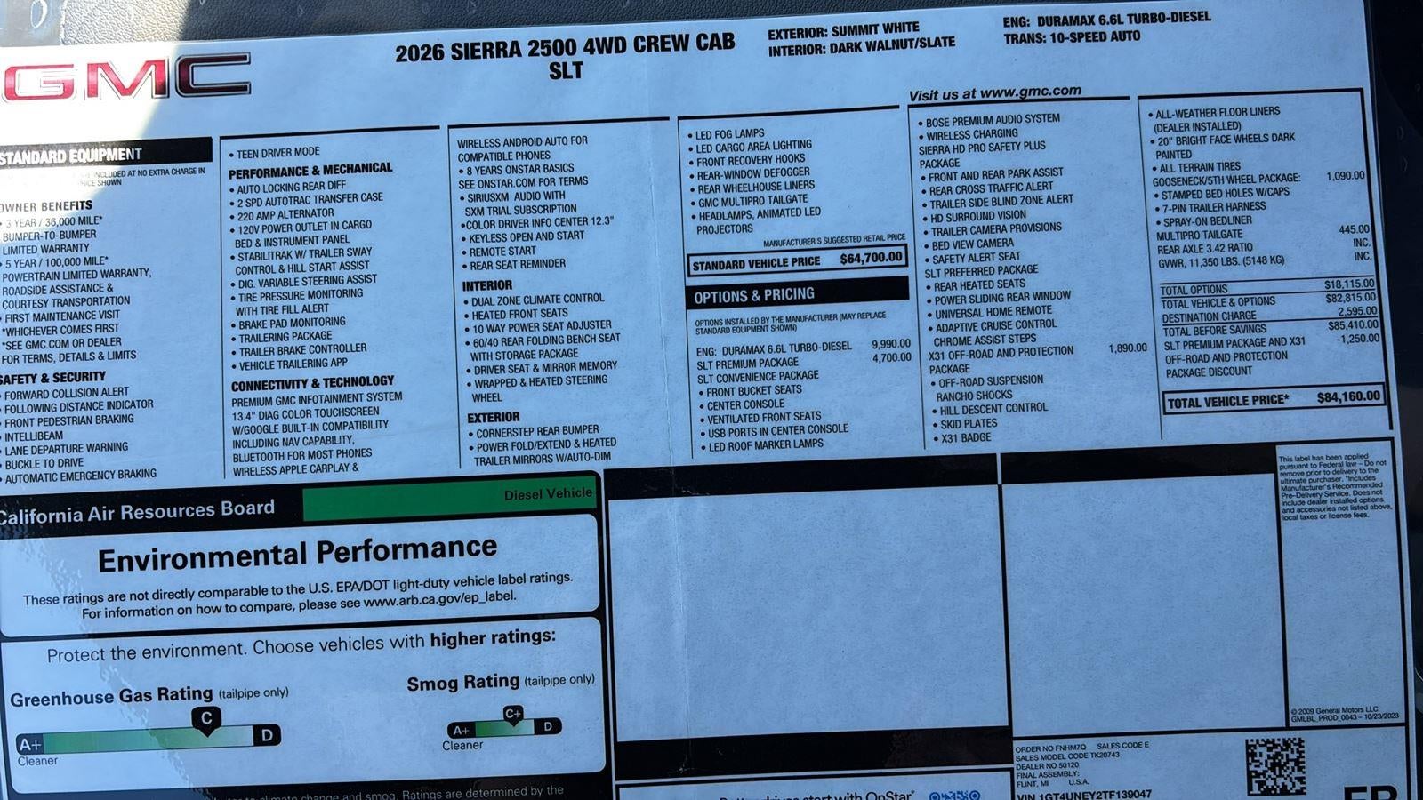 Thank you for choosing McConnell GMC, this Summit White 2026 GMC Sierra 2500HDSLT is a great choice! Checkout the following: City0/HWY 0 SLT Convenience PackageFront Bucket SeatsWireless ChargingVentilated Driver and Front Passenger SeatsLED Smoked Amber Roof Marker Lamps2 Charge/data USB Ports Inside Center ConsoleBose Premium 7-Speaker Sound SystemX31 Off-Road and Protection Package ($1,935 value)Spray-On Pickup Bedliner with GMC Logo20" Bright Face Wheels with Dark Painted PocketsLT275/65R20 AT BW TiresAll-Weather Floor LinersX31 Off-Road PackageHill Descent ControlSkid PlatesOff-Road SuspensionSLT Premium Package ($4,495 value)6" Rectangular Chromed Tubular Assist StepsSpray-On Pickup Bedliner with GMC LogoPreferred Equipment Group 4SASiriusXM with 360L Trial SubscriptionPower Front Passenger Windows with Express Up/downDeep-Tinted GlassKeyless Open and StartRear Wheelhouse LinersPush Button StartRemote Vehicle Starter SystemElectric Rear-Window DefoggerFront Rain-Sensing WipersChrome Surround Grille with Chrome Insert BarsHeated Driver and Front Outboard Passenger Seats120-Volt Bed Mounted Power Outlet120-Volt Instrument Panel Power OutletManual Tilt-Wheel/telescoping Steering Column2-Speed Active Transfer CaseSierra HD Pro SafetyWireless Phone ProjectionProGrade Trailering System2 Charge-Only Rear USB Ports2 Charge/data USB PortsOnStar Services CapableLED Cargo Area LightingSteering Wheel Audio Controls6-Speaker Audio System FeatureUnauthorized Entry Theft-Deterrent SystemSLT Preferred PackagePower Sliding Rear Window with DefoggerHeated 2nd Row Outboard SeatsAdaptive Cruise ControlUniversal Home RemoteSierra HD Pro Safety Plus PackageSafety Alert SeatTrailer Cam Provisions and Trailer Viewing SoftwareUltrasonic Front and Rear Park AssistRear Cross Traffic AlertTrailer Side Blind Zone AlertHD Surround VisionBed View Camera with Two Trailer Camera Provisions Safety and Security Forward collision mitigation - Forward thinking. You look away for just a second and suddenly the vehicle in front of you has stopped. That's when the forward collision mitigation system comes to life. When it senses an impending impact, it will activate a combination of features to help prevent or reduce the severity of an accident. Forward collision mitigation is always looking ahead. Pedestrian impact prevention - An extra step toward safety. Pedestrians don't always stop, look, and listen, but with Pedestrian Impact Prevention, your vehicle is equipped to better see them and avoid them. This system constantly monitors the road ahead to identify and track pedestrians. It projects that image to an interior display screen, AND should an impact become likely, Pedestrian impact prevention takes steps to avoid a collision. Rear camera - Watching your back! The rear camera helps you see obstacles and hazards you otherwise couldn't by showing enhanced images of what is behind you. The rear camera is an extra set of eyes that's both convenient and safe.Technology and Telematics Apple CarPlay/Android Auto smart device wireless mirroring Mobile hotspot - WiFi on the fly. Connect your devices to the Internet through your vehicles private mobile hotspot and take the internet wherever your journey takes you, without eating up your data allowance. Find the hotspot with mobile hotspot. *See Dealer for Details! If you're thinking about a New or Pre-Owend Vehicle... THINK MCCONNELL AUTOMOTIVE !!!! The BEST deal in Mobile since 1955 !!!! Home of NO SHENANIGANS and a lifetime powertrain warranty on New GMC vehicles!! Serving Mobile and surrounding areas: Prichard, Saraland, Daphne, Fairhope, Bay Minette, Theodore, Moss Point, Pascagoula, Gautier, Ocean Springs, Biloxi, Pensacola, Lucedale, Foley, Satsuma, Gulf Shores, Orange Beach, Citronelle, Grove Hill, Thomasville, Jackson.