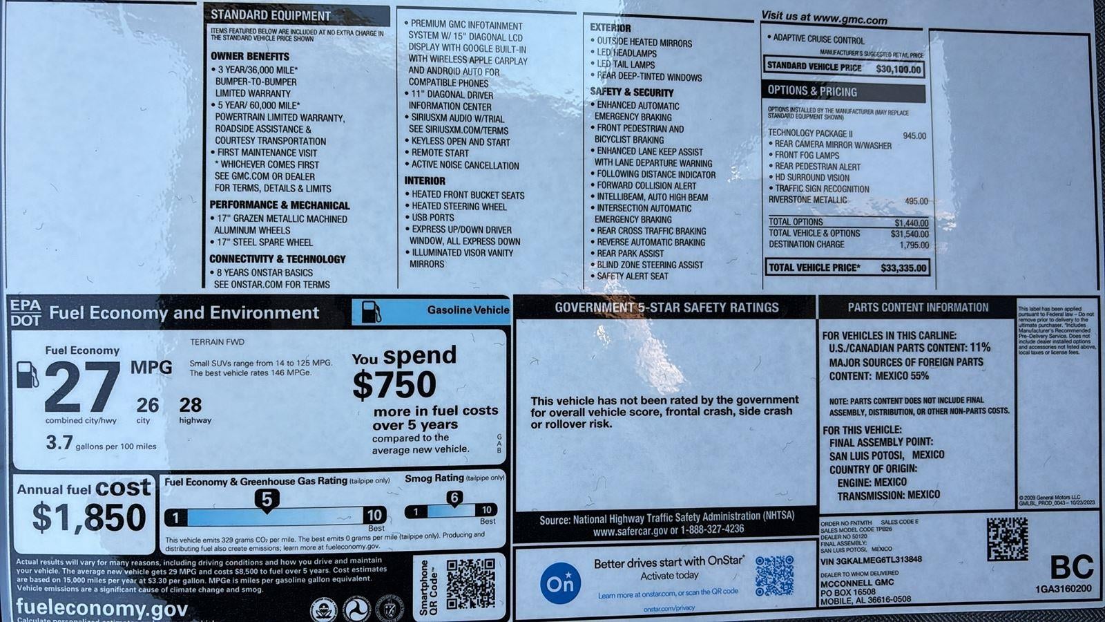 Thank you for choosing McConnell GMC, this Riverstone Metallic 2026 GMC TerrainFWD Elevation is a great choice! Checkout the following: City26/HWY 28 ENGINE, 1.5L TURBO DOHC 4-CYLINDER, SIDI, VVT, RIVERSTONE METALLIC